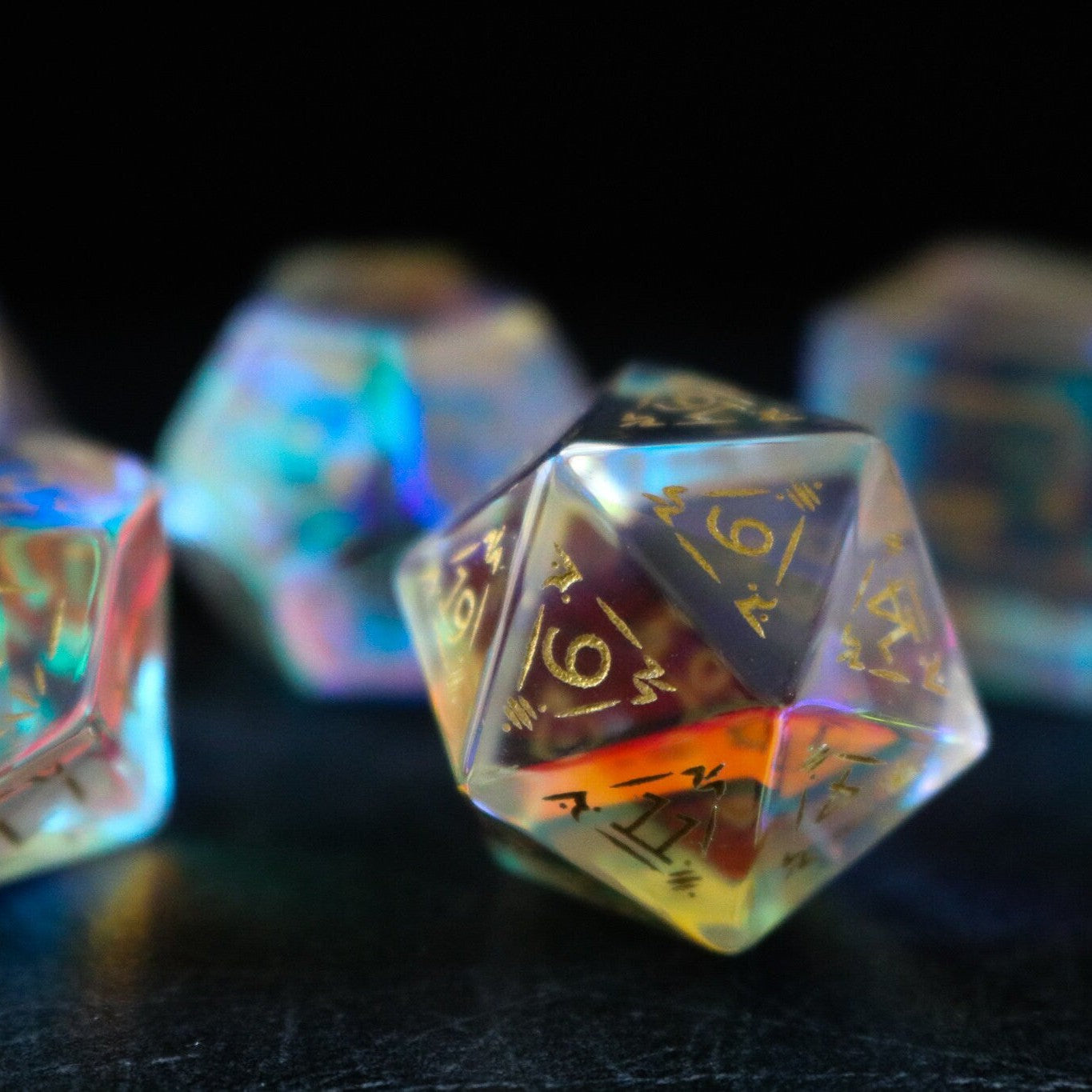 Dragon Shield Gemstone Dichroic Glass Polyhedral Dice (With Box) DND Set
