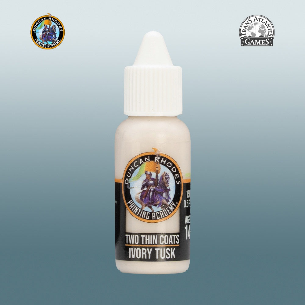 The Duncan Rhodes Painting Academy ‘Two Thin Coats’ Paint Range is a range of paints developed from the ground up with some of the best paint development chemists in the world. These are not paints we just bought off the shelf and bottled. We developed each colour to meet our high standards of what we thought a miniature paint should be. We have been working in partnership with Trans Atlantis Games to create a set of paints that would be useful to any level of hobbyist. Whether you are a beginner or a seasoned painter, we believe that you’ll find using these paints an absolute joy to use!