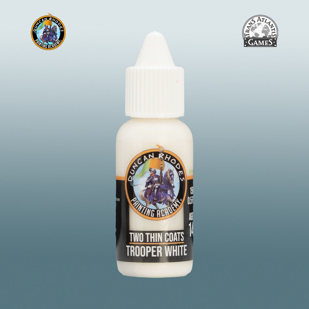 The Duncan Rhodes Painting Academy ‘Two Thin Coats’ Paint Range is a range of paints developed from the ground up with some of the best paint development chemists in the world. These are not paints we just bought off the shelf and bottled. We developed each colour to meet our high standards of what we thought a miniature paint should be. We have been working in partnership with Trans Atlantis Games to create a set of paints that would be useful to any level of hobbyist. Whether you are a beginner or a seasoned painter, we believe that you’ll find using these paints an absolute joy to use!